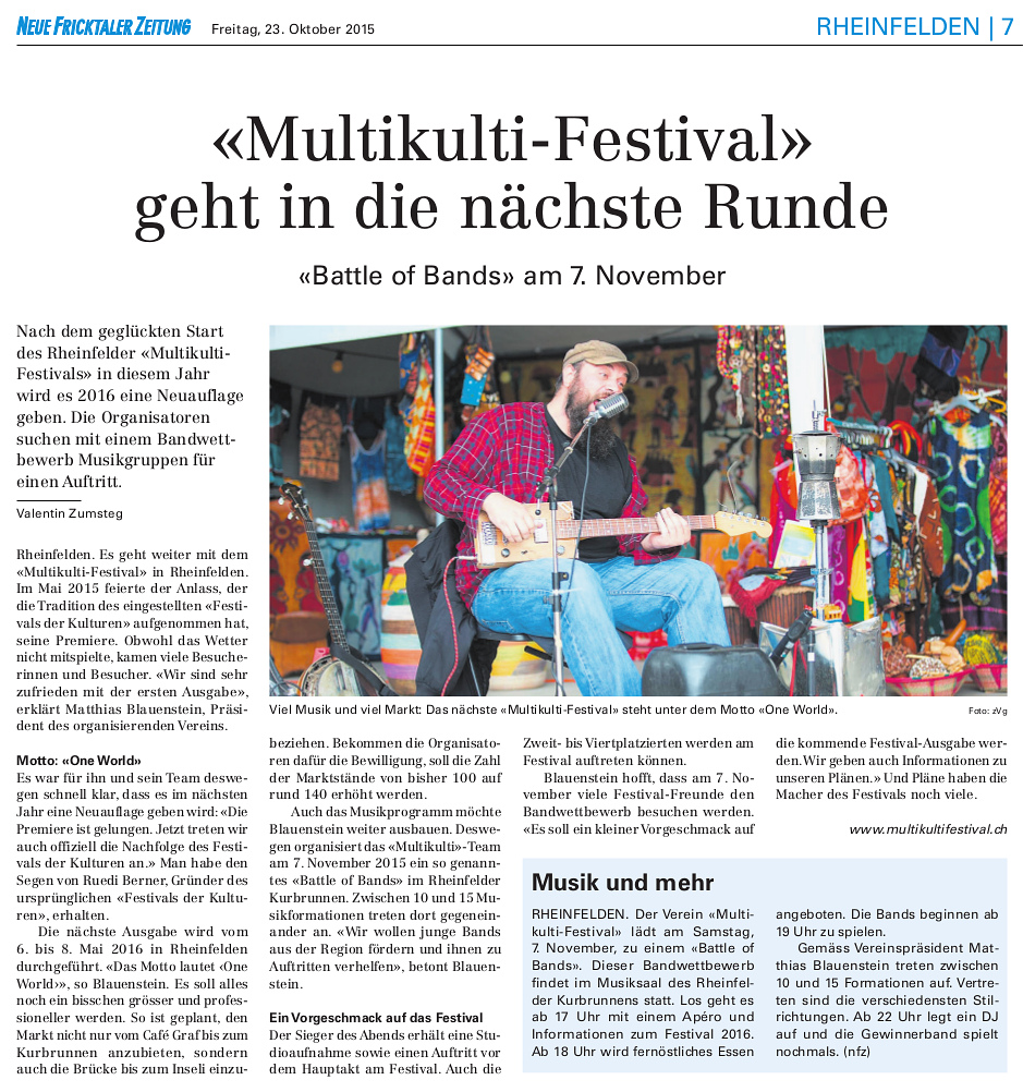 Nach einem spannenden und lockerem Gespräch mit Valentin Zumsteg enstand diese erste Pressemiteilung für das kommende "Festival der Kulturen". Ein grosses Dankeschön an die Neue Fricktaler Zeitung und Lob an Valentin Zumsteg.